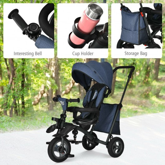 7-In-1 Baby Folding Tricycle Stroller with Rotatable Seat-Blue