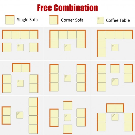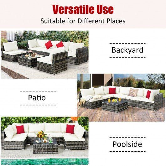 7 Pieces Patio Rattan Furniture Set Sectional Sofa Garden Cushion-White