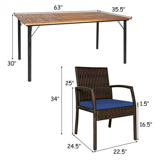 7Pcs Patio Rattan Cushioned Dining Set with Umbrella Hole-Navy