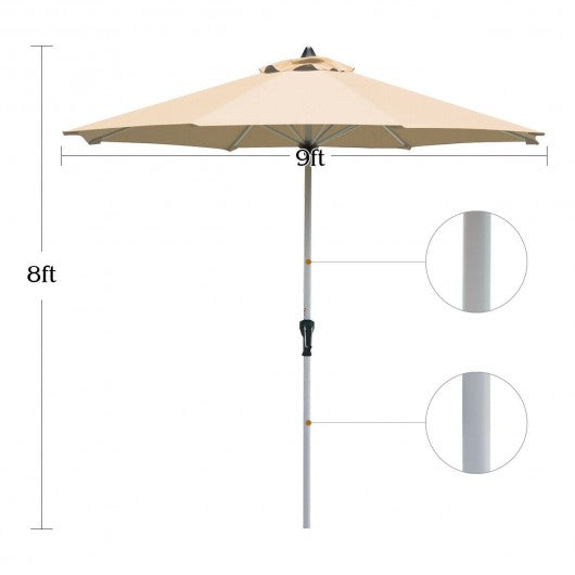 9' Patio Outdoor Market Umbrella with Aluminum Pole without Weight Base-Beige
