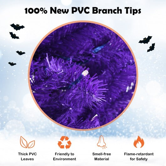 Artificial Prelit Purple Halloween Tree with Orange Lights and Pumpkin Ornaments-5'