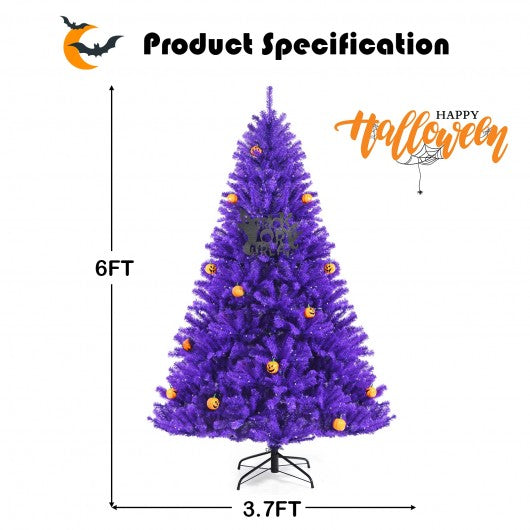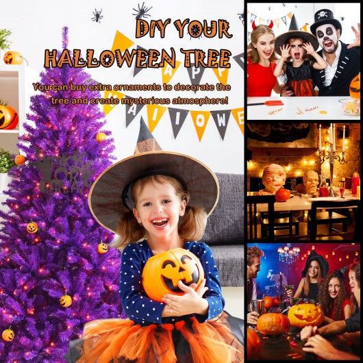 Artificial Prelit Purple Halloween Tree with Orange Lights and Pumpkin Ornaments-6'
