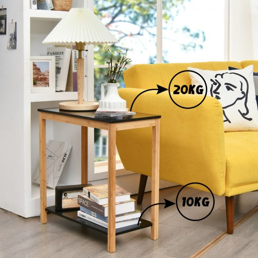 Bamboo Side Table 2-Tier Sofa End Console Table with Storage Shelf Felt Pad for Bedroom