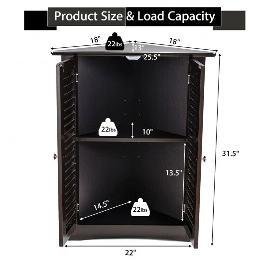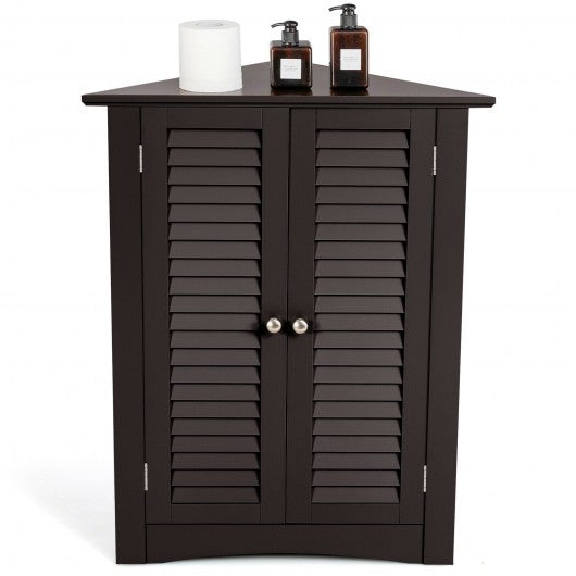 Bathroom Corner Storage Freestanding Floor Cabinet with Shutter Door-Brown