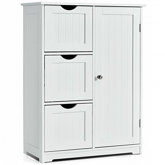 Bathroom Floor Cabinet Side Storage Cabinet with 3 Drawers and 1 Cupboard-White