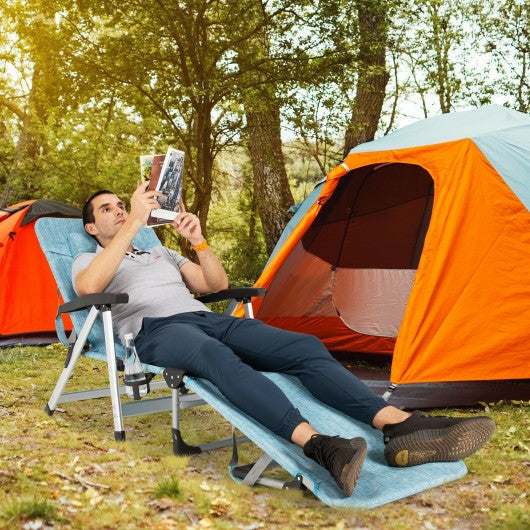 Beach Folding Chaise Lounge Recliner with 7 Adjustable Position-Blue