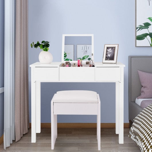 Black - White Vanity Makeup Dressing Table Writing Desk Set with Flip Top Mirror and Cushioned Stool-White