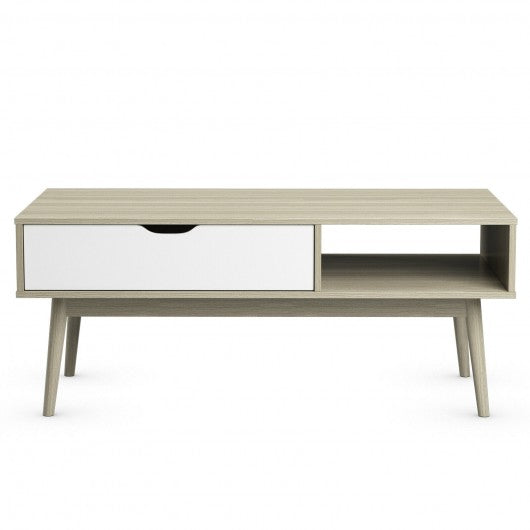 Coffee Cocktail Accent Table with Drawer and Storage Shelf-Gray