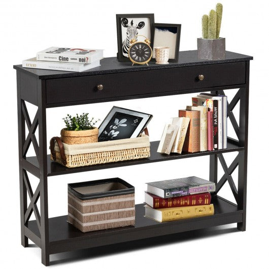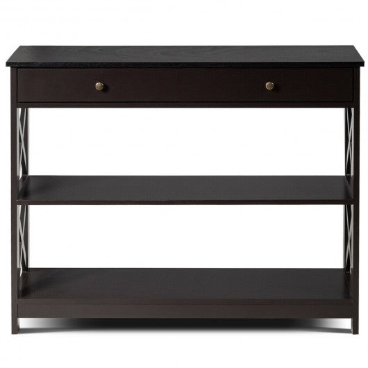 Console Table 3-Tier with Drawer and Storage Shelves-Espresso