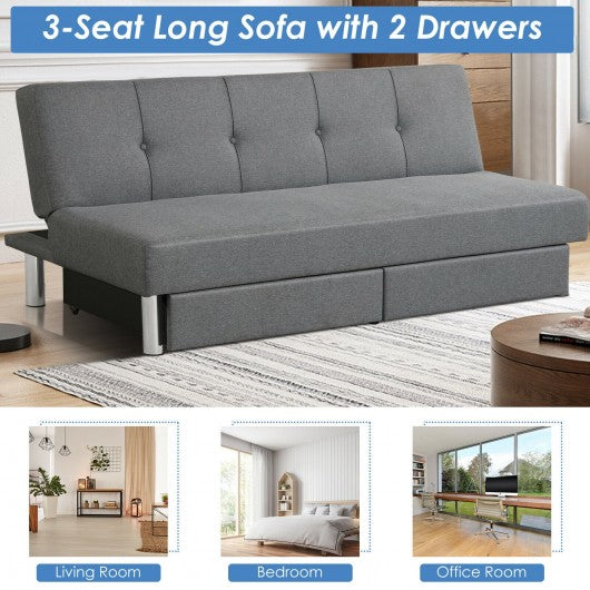 Convertible Futon Sofa Bed Adjustable Couch Sleeper with Two Drawers Grey