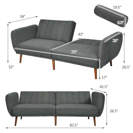 Convertible Futon Sofa Bed Adjustable Couch Sleeper with Wood Legs-Gray