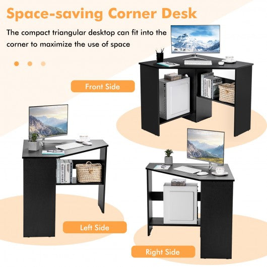 Corner Computer Desk Triangle Writing Workstation with Storage Shelf-Black