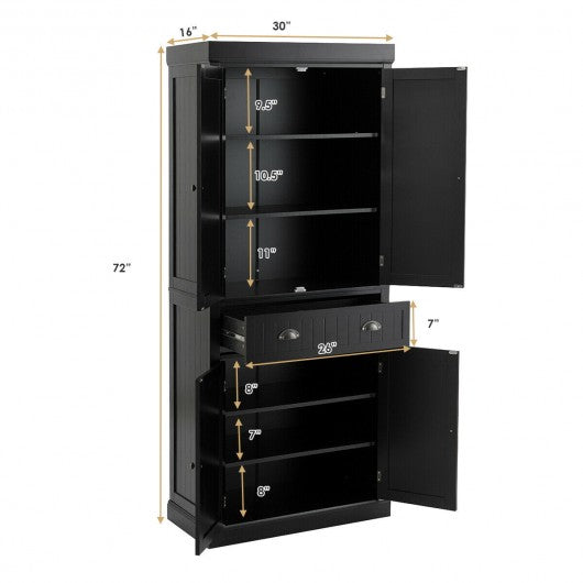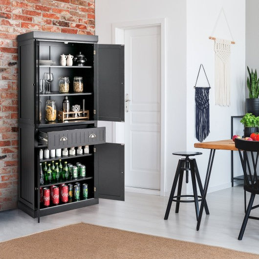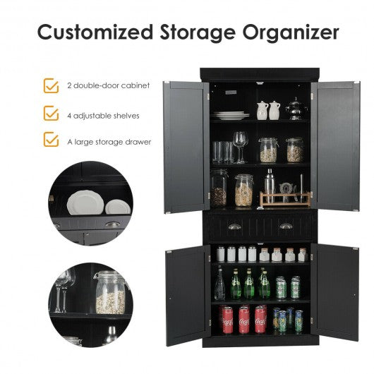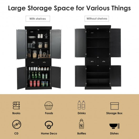 Cupboard Freestanding Kitchen Cabinet w- Adjustable Shelves-Black