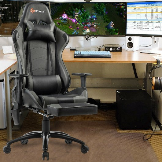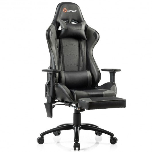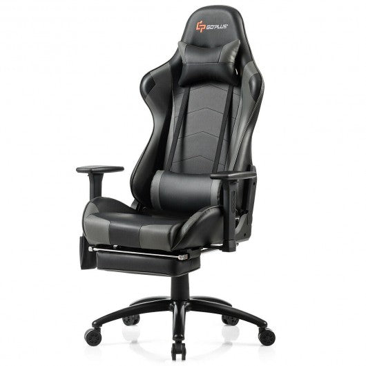 Ergonomic High Back PU Leather Massage Gaming Chair-Gray