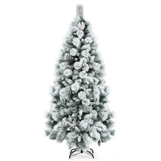 Flocked Hinged Artificial Christmas Slim Tree with Pine Needles-6 ft