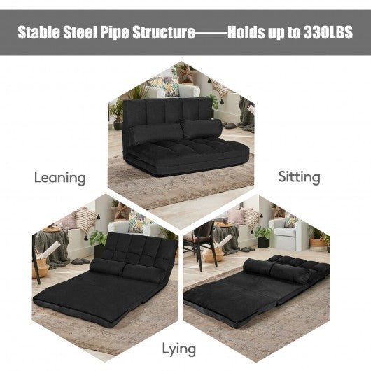 Foldable Floor 6-Position Adjustable Lounge Couch-Black