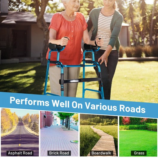 Folding Adjustable Aluminum Wheel Walking Frame-Navy