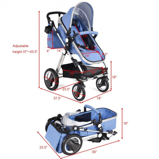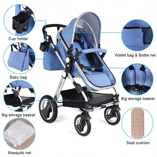 Folding Aluminum Baby Stroller Baby Jogger with Diaper Bag-Blue
