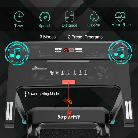 Folding Electric Compact Walking Treadmill with APP Control Speaker-Blue