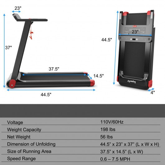 Folding Electric Compact Walking Treadmill with APP Control Speaker-Red