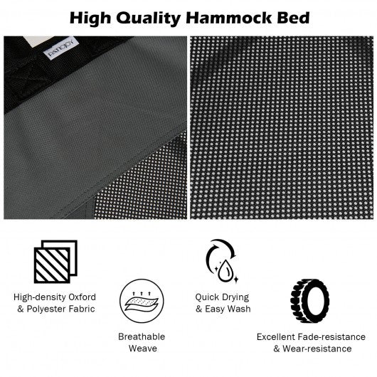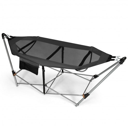 Folding Hammock Indoor Outdoor Hammock with Side Pocket and Iron Stand-Gray