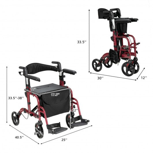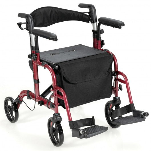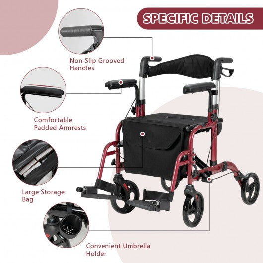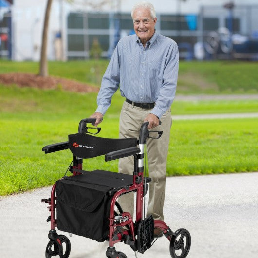 Folding Rollator Walker with Seat and Wheels Supports up to 300 lbs-Red