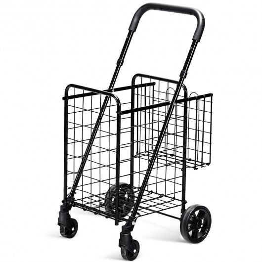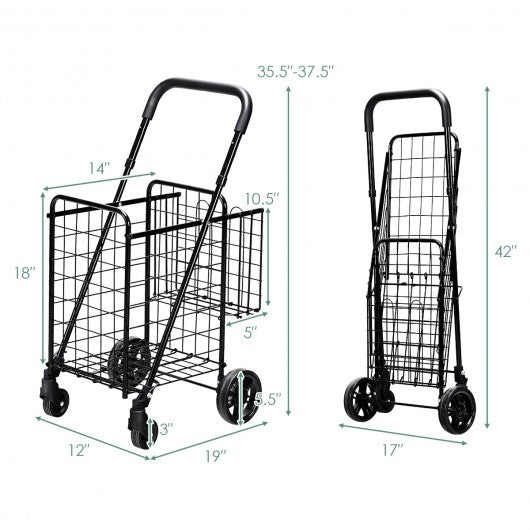 Folding Shopping Cart Basket Rolling Trolley with Adjustable Handle-Black