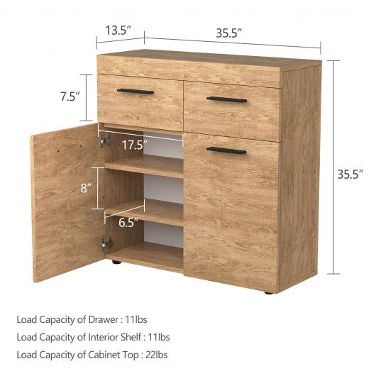 Free Standing Storage Cabinet Floor Cabinet with 2 Drawers Doors and Shelves