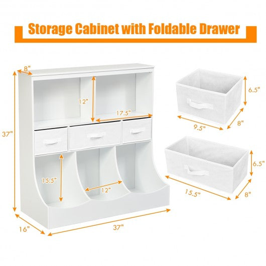 Freestanding Combo Cubby Bin Storage Organizer Unit W-3 Baskets-White