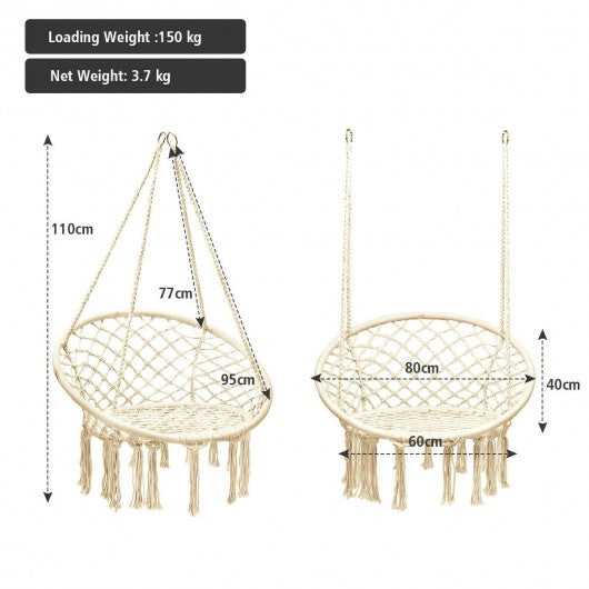 Hanging Macrame Hammock Chair with Handwoven Cotton Backrest-Natural