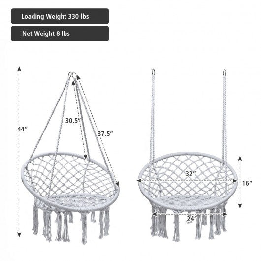Hanging Macrame Hammock Chair with Handwoven Cotton Backrest-White