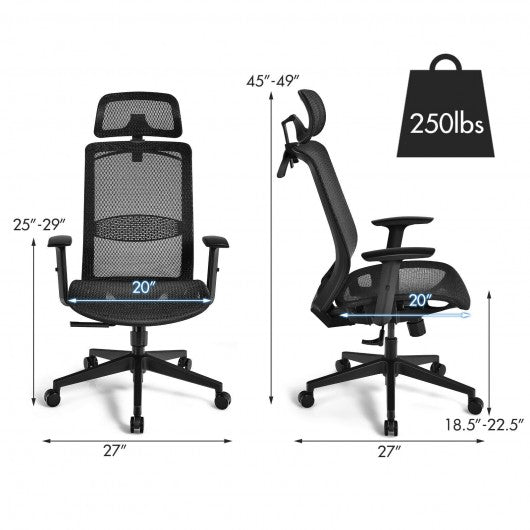 Height Adjustable Ergonomic High Back Mesh Office Chair with Hange-Black