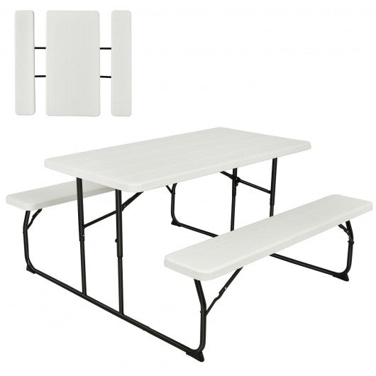 Indoor and Outdoor Folding Picnic Table Bench Set with Wood-like Texture-White