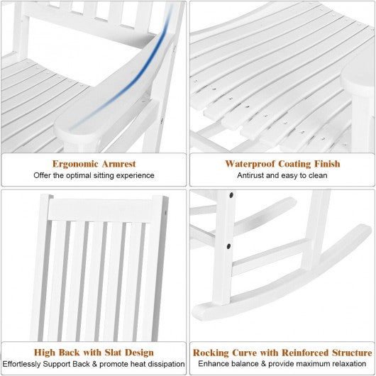 Indoor Outdoor Wooden High Back Rocking Chair-White