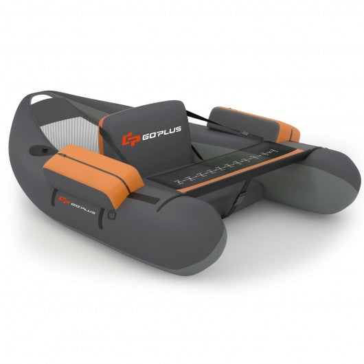 Inflatable Fishing Float Tube with Pump Storage Pockets and Fish Ruler-Gray