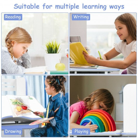 Kids Multifunctional Writing Desk with Tilt Desktop and Book Shelf-Blue