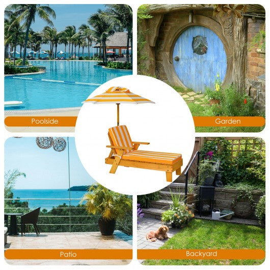 Kids Outdoor Wood Lounge Chair with Height Adjustable Umbrella