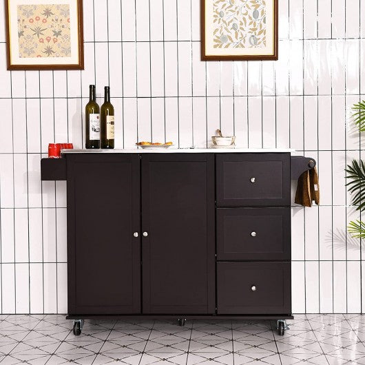 Kitchen Island 2-Door Storage Cabinet with Drawers and Stainless Steel Top-Deep Brown