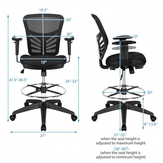 Mesh Drafting Chair Office Chair with Adjustable Armrests and Foot-Ring-Black