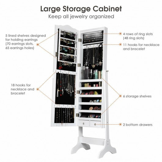 Mirrored Jewelry Cabinet Storage with Drawer and Led Lights-White