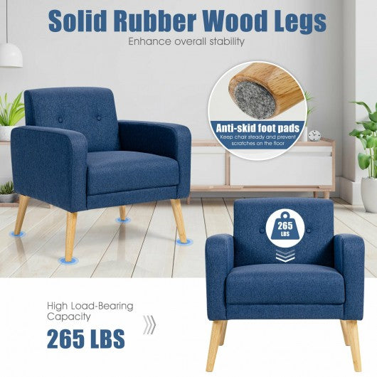 Modern Accent Chair Upholstered Linen Armchair with Rubber Wood Legs-Navy