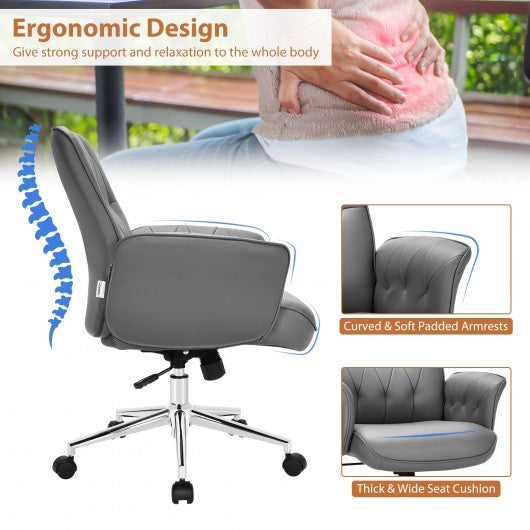 Modern Home Office Leisure Chair PU Leather Adjustable Swivel with Armrest-Gray