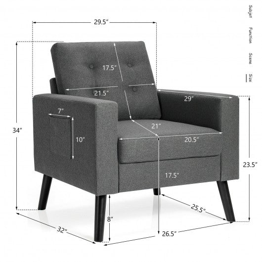 Modern Tufted Accent Chair w- Rubber Wood Legs-Gray