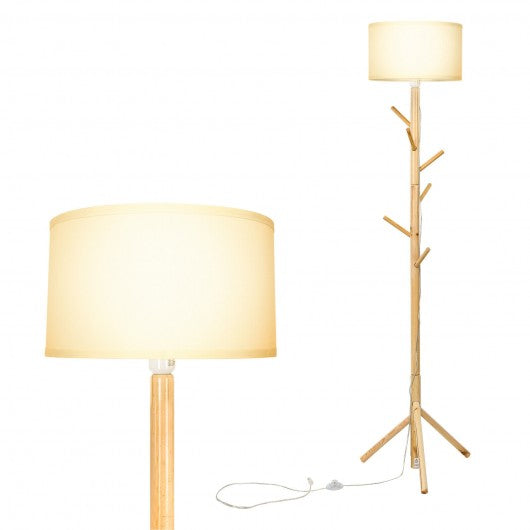 Multifunctional Wood Floor Light with 6 Hooks and E26 Lamp Holder for Living Room Bedroom Hallway