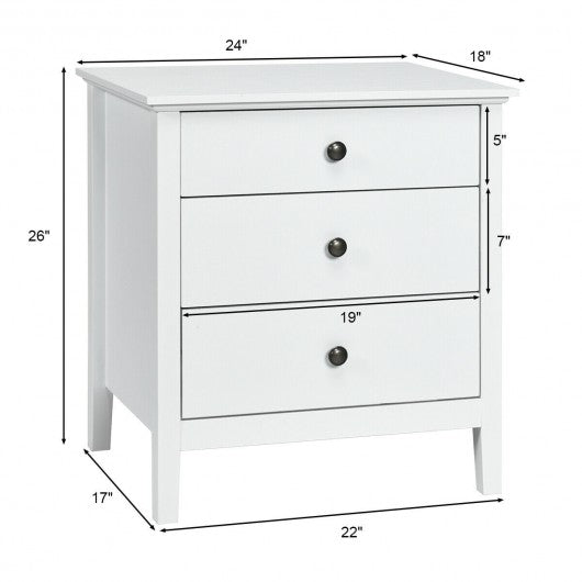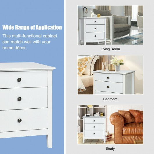 Nightstand Beside End Side Table Organizer with 3 Drawers-White