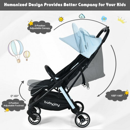 One-Hand Folding Portable Lightweight Baby Stroller with Aluminum Frame-Blue