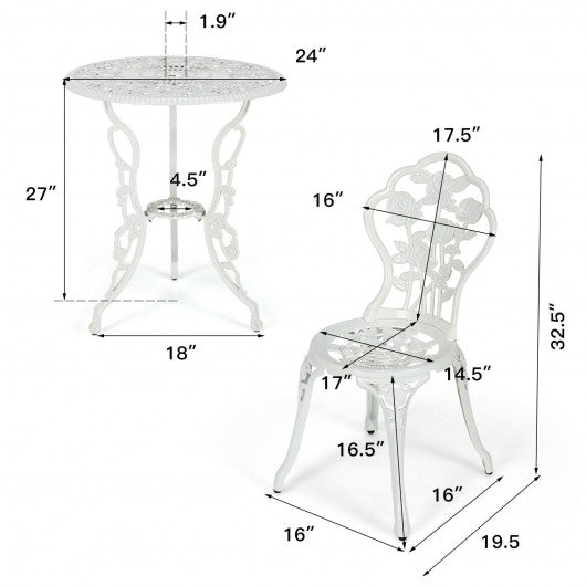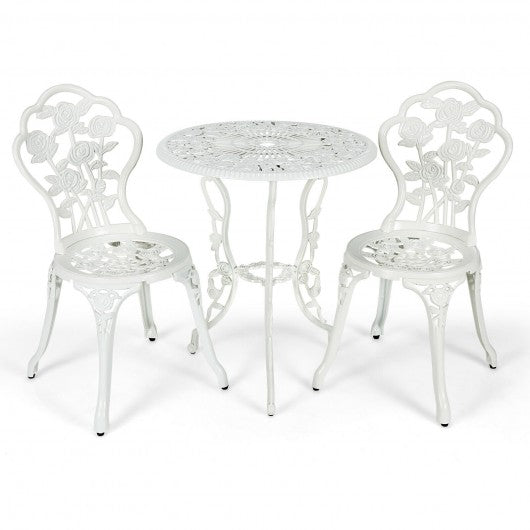 Outdoor Cast Aluminum Patio Furniture Set with Rose Design-White