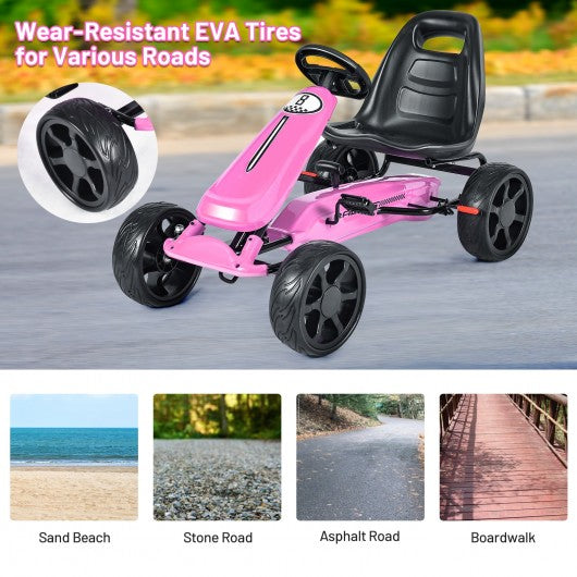 Outdoor Kids 4 Wheel Pedal Powered Riding Kart Car-Pink