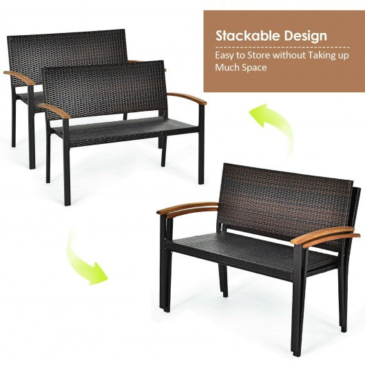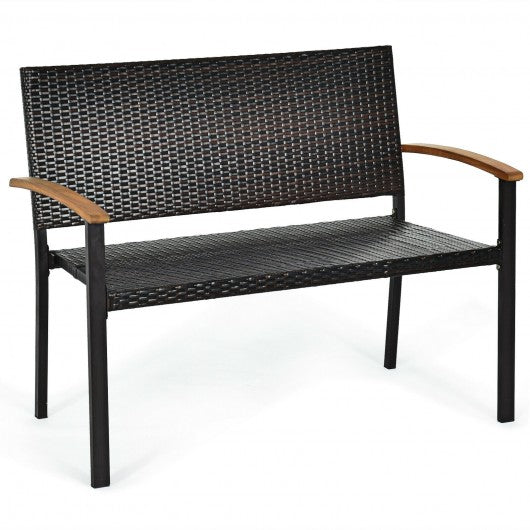 Outdoor Patio Rattan Wicker Bench with Armrest for Garden