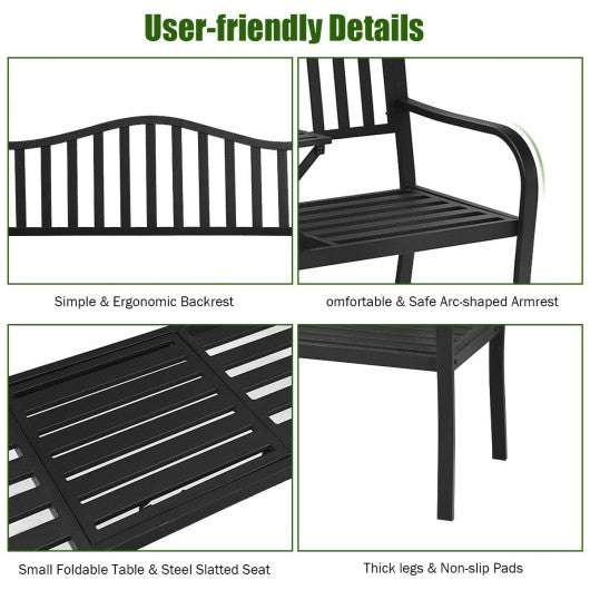 Patio Garden Bench Steel Frame with Adjustable Center Table